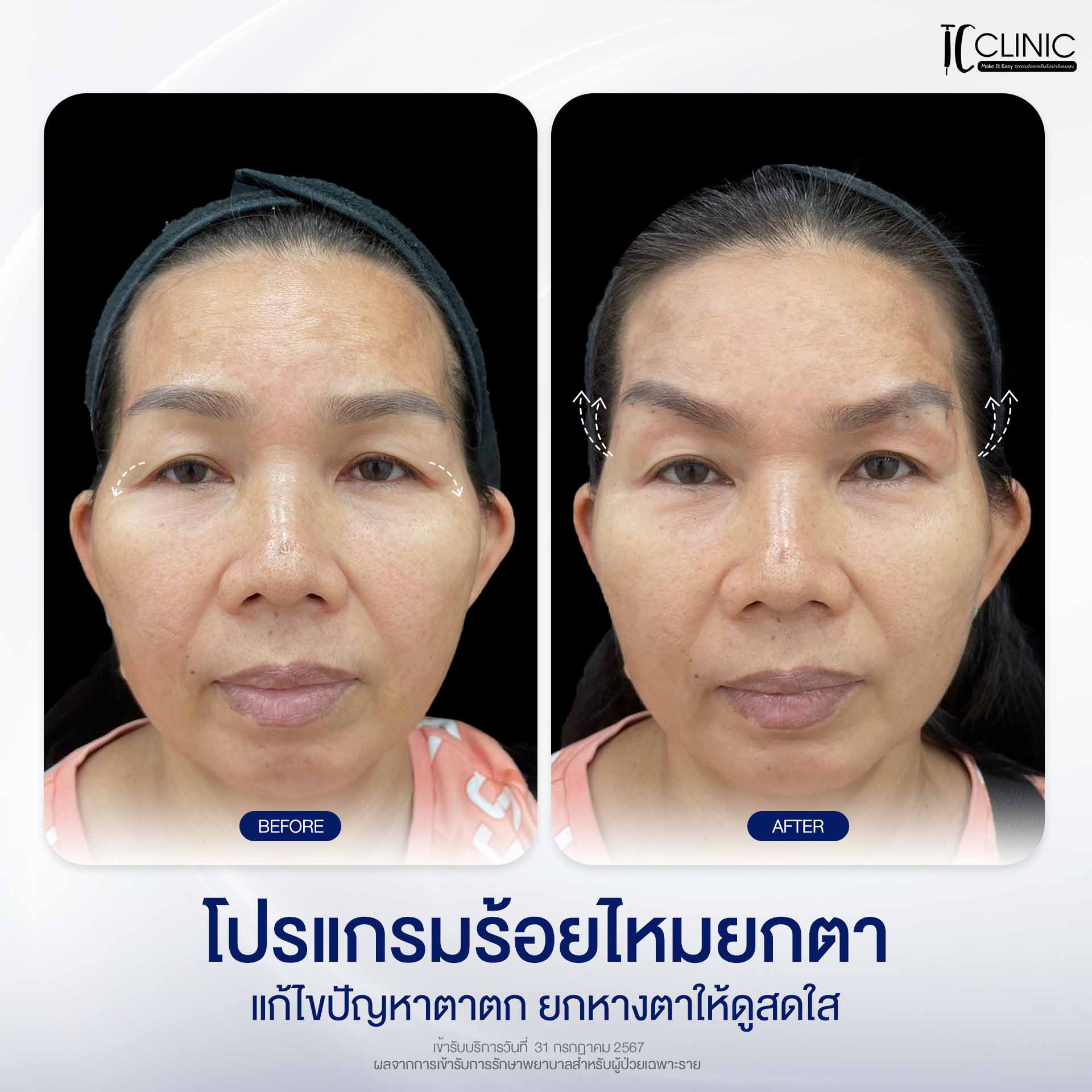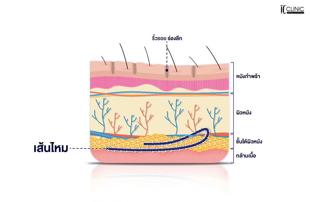 โปรแกรมร้อยไหมยกใบหน้า ช่วยแก้ไขปัญหานี้ ได้โดยการวางเส้นไหมละลายทางการแพทย์ในชั้นผิวที่เหมาะสม เส้นไหมจะทำหน้าที่พยุงผิวที่หย่อนคล้อยให้ยกขึ้นไป ตามแผนการรักษา พร้อมกระตุ้นให้ร่างกายสร้างคอลลาเจนใหม่รอบแนวไหม ช่วยให้ผิวค่อย ๆ ดูแน่นขึ้นและมีแรงพยุงที่ดีขึ้น